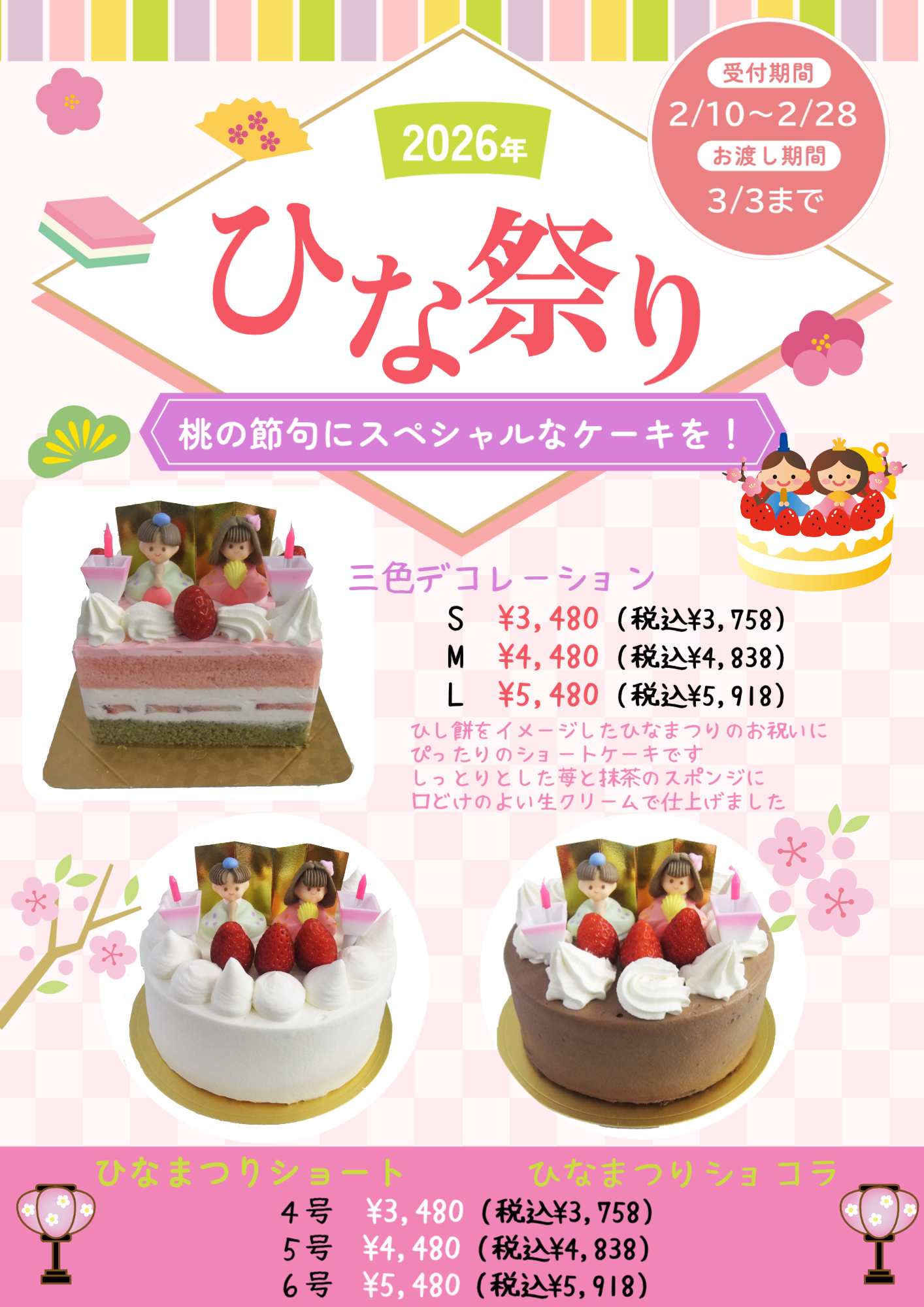 ひなまつりケーキご予約受付中!